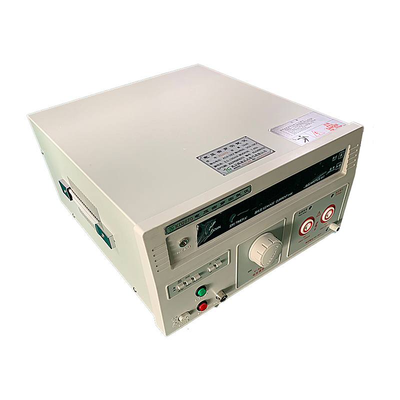 KD2670A電壓擊穿測試儀根據其作用可稱為電氣絕緣強度試驗儀、介質強度測試儀等。其工作原理是:把一個高于正常工作的電壓加在被測設備的絕緣體上,持續一段規定的時間,加在上面的電壓就只會產生很小的漏電流,則絕緣性較好。程控電源模塊、信號采集調理模塊和計算機控制系統三個模塊組成測試系統。選擇耐壓儀的2個指標:最大輸出電壓值及最大報警電流值的數值。