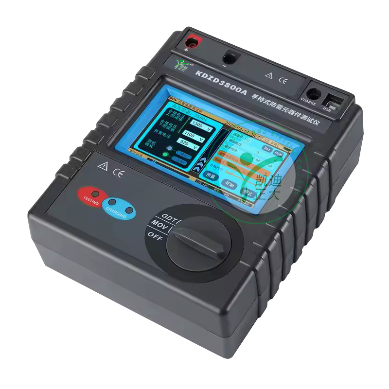 KDZD3800A 手持式防雷元器件測試儀用于測量各種壓敏電阻(MOV)和氣體放電管(GDT) 性能參數(shù)測試,儀表具有高壓短路保護、過流保護功能,具有參數(shù)設(shè)置功能、高壓 限值設(shè)定、升壓速度設(shè)定、合格范圍設(shè)定、合格判斷篩選、自動量程調(diào)節(jié)等功能。還具有單件測試模式、連續(xù)測試模式功能,適合批量元件測試。其中KDZD3800A還具有絕緣電阻、吸收比、極化指數(shù)測試功能。