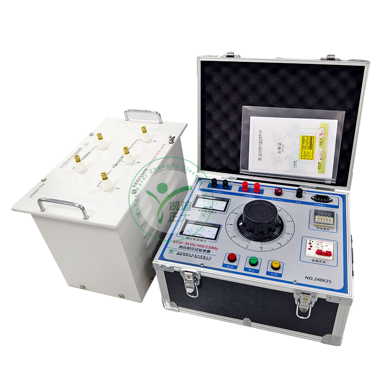 KDSF 感應耐壓試驗裝置是利用磁路的飽和特性,取出諧波中分量最大的三次諧波電壓,作為發生器的電源,對感應線圈式的電氣產品作匝間、段間、層間的倍頻、倍壓試驗;以考核線圈的絕緣強度、耐壓水平。