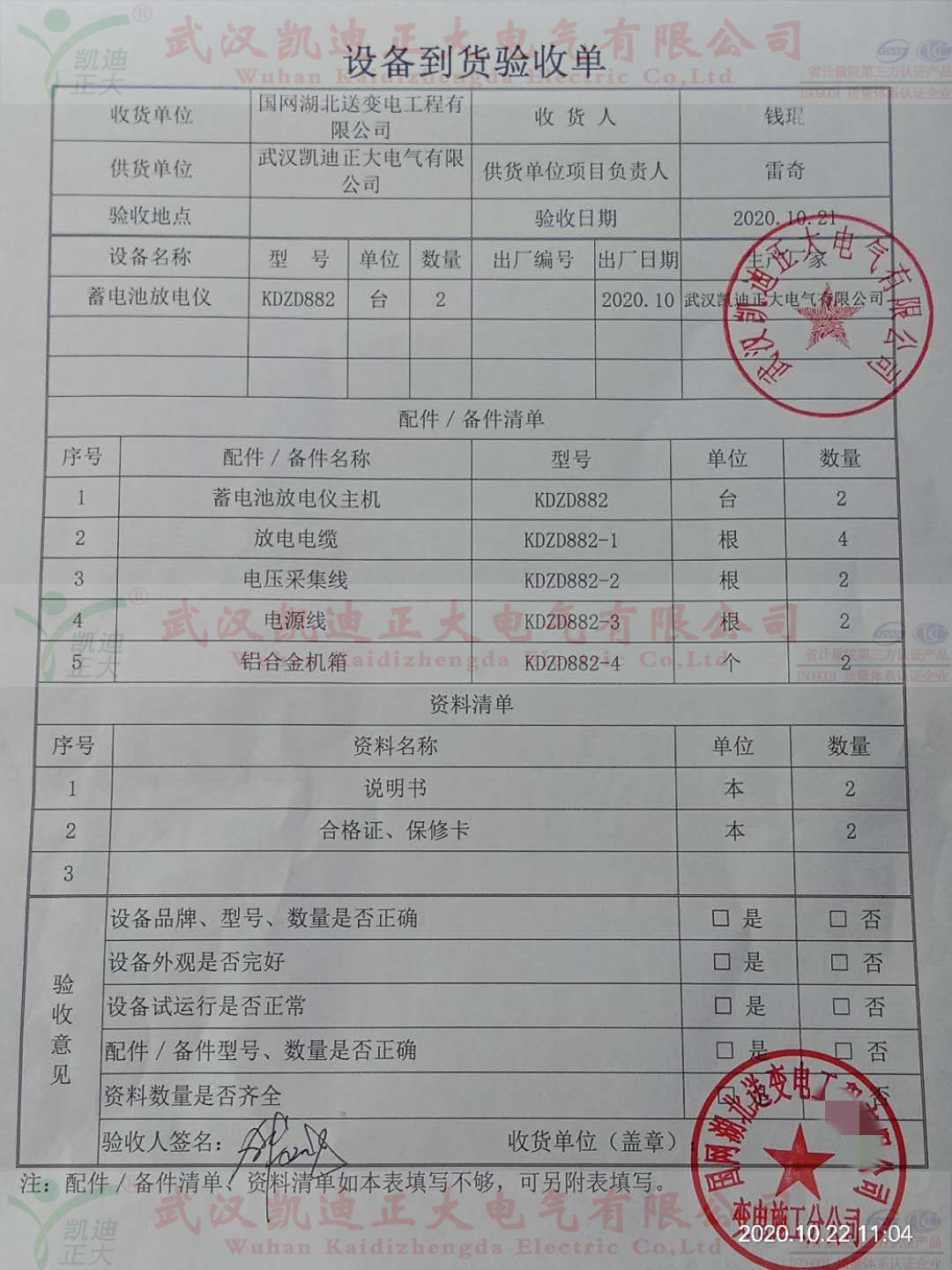 賀KDZD882放電儀獲國網湖北送變電公司驗收合格