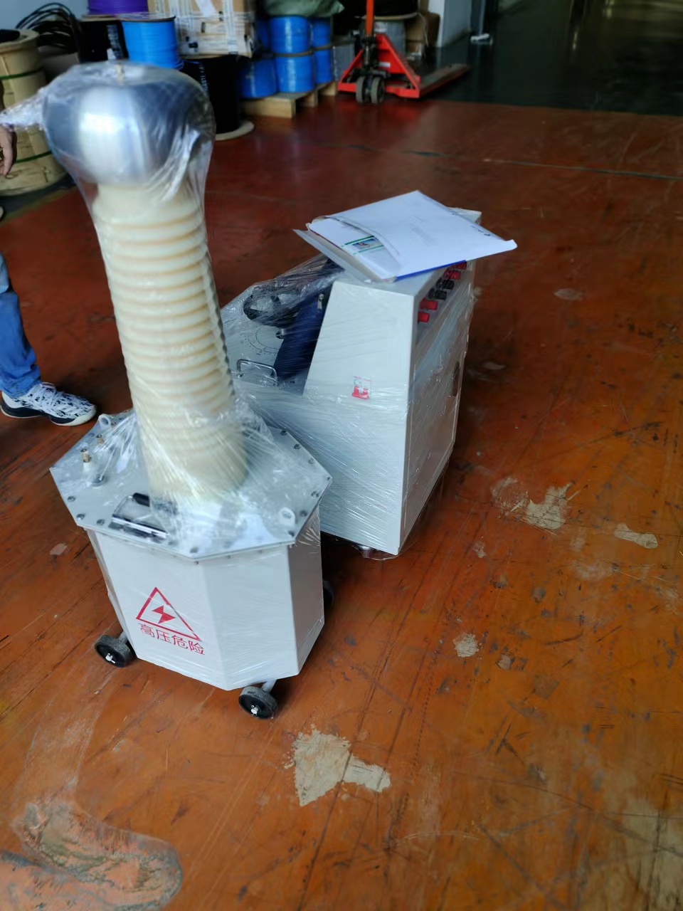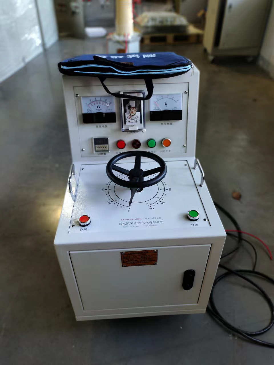 該設(shè)備型號(hào)為KDYDJ 10kVA/100kV 工頻耐壓試驗(yàn)裝置。