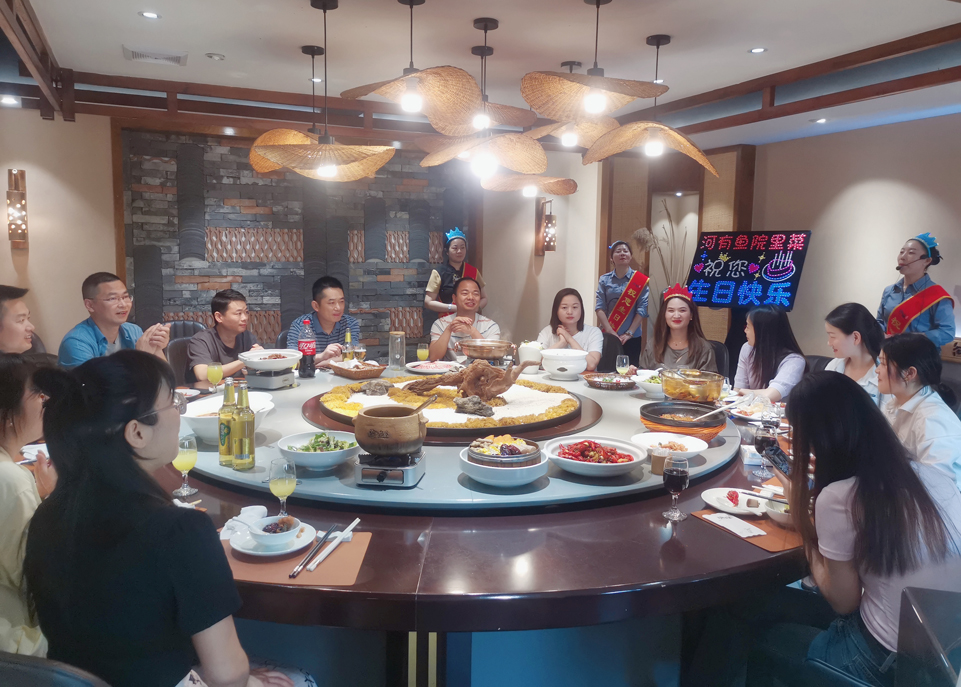 聚餐于近日在公司附近的河有魚·院里菜飯店(徑河店)隆重舉行,員工歡聚一堂,共同為這個(gè)月過生日的壽星慶祝生日。選擇這一家很有特色的餐廳,據(jù)說是網(wǎng)紅打卡圣地,被她們家的環(huán)境吸引而來,裝修風(fēng)格屬于田園式餐廳,十分溫馨。