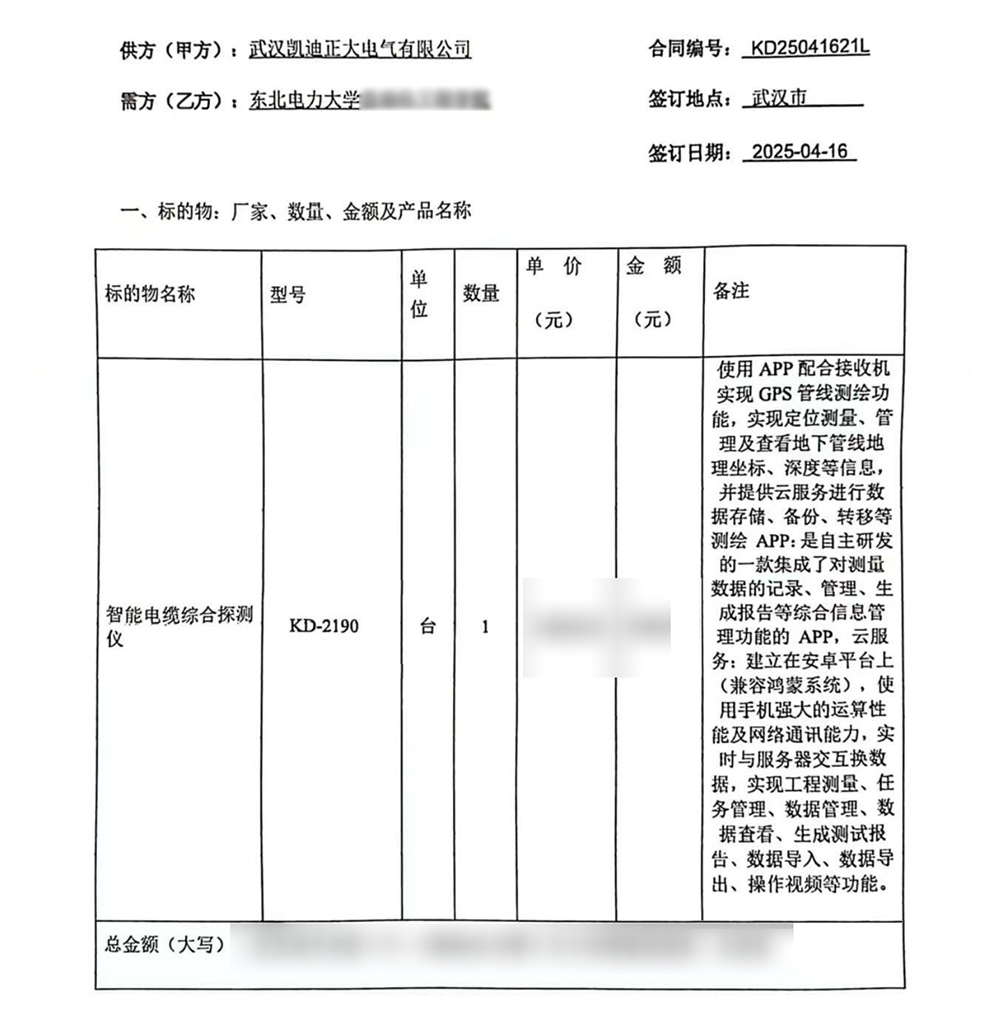 在眾多供應(yīng)商中,東北電力大學(xué)最終選擇了武漢凱迪正大電氣。這一選擇背后,是對(duì)武漢凱迪正大電氣多年來在電力行業(yè)積累的技術(shù)實(shí)力的認(rèn)可,更是對(duì)其產(chǎn)品在實(shí)際應(yīng)用中所展現(xiàn)出的可靠性、效率的信賴。武漢凱迪正大電氣以其專業(yè)的服務(wù)團(tuán)隊(duì)、完善的售后保障以及KD-2190智能電纜綜合探測(cè)儀的性能,贏得了東北電力大學(xué)的青睞與信任。